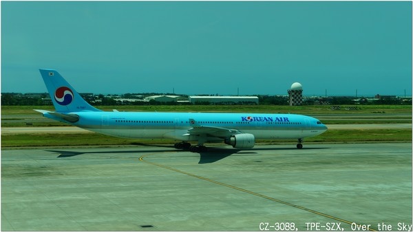 因為離登機時間沒多少時間,便直奔C3登機門,免稅店都沒逛。但是到了C3登機門(那邊有Hello Kitty主題候機室),發現怎麼沒啥人,再重看了一次候機資訊,才發現登機門改道D8,簡直是反方向啊。不過還是趁亂拍了飛機照。