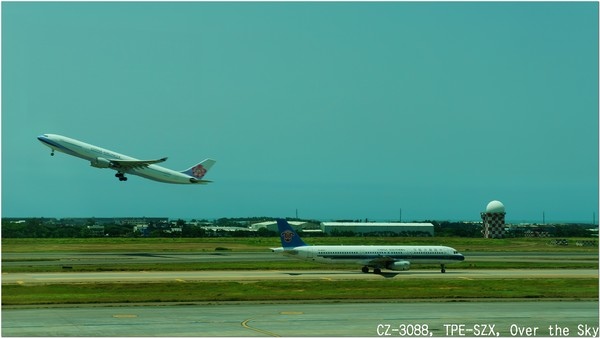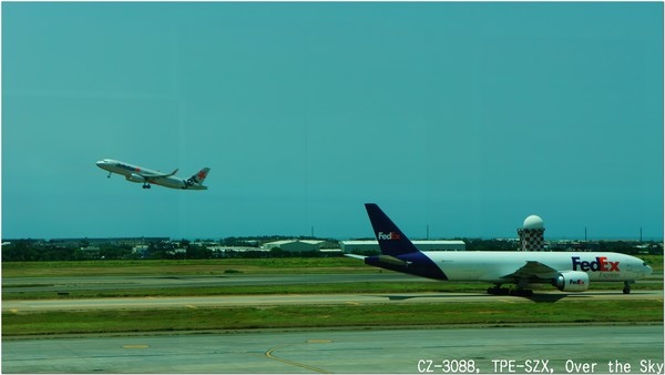 起飛的華航,跟這次要搭的南方航空班機,這樣相比這架南航飛機好小。