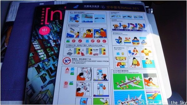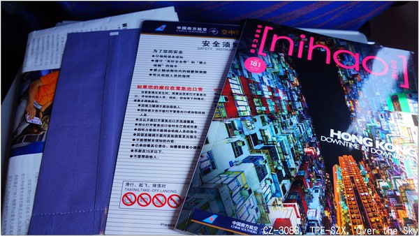 終於來到登機時間,等了好久才上機。經濟艙椅距,我怎麼覺得南航特別窄?