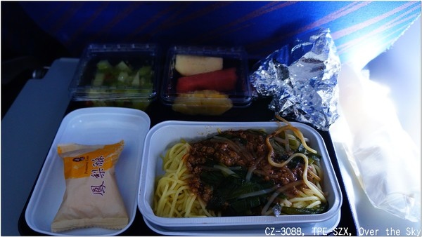 炸醬麵鰻好吃的,生菜也OK,看來有符合台灣口味。我特地將鳳梨酥留下,以便之後思鄉時可吃。