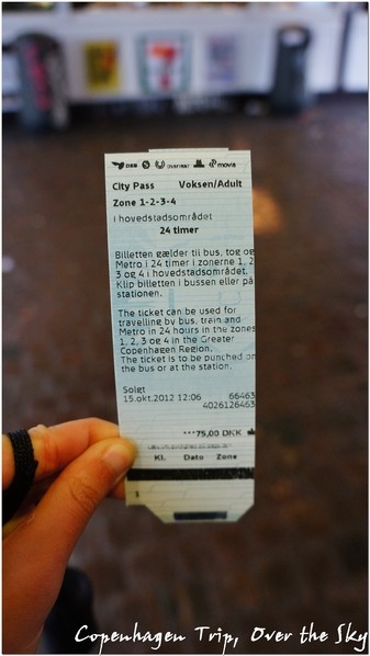 朋友住在Frederiksborg,哥本哈根商學院附近,所以我必須要搭通勤火車到Norreport後,再換地鐵M2到Frederiksborg。哥本哈根交通單程票為24丹麥克朗,24小時票為75克朗,換句話說只要搭乘3次以上就會回本了。通勤火車、地鐵、公車都可以適用24小時票。